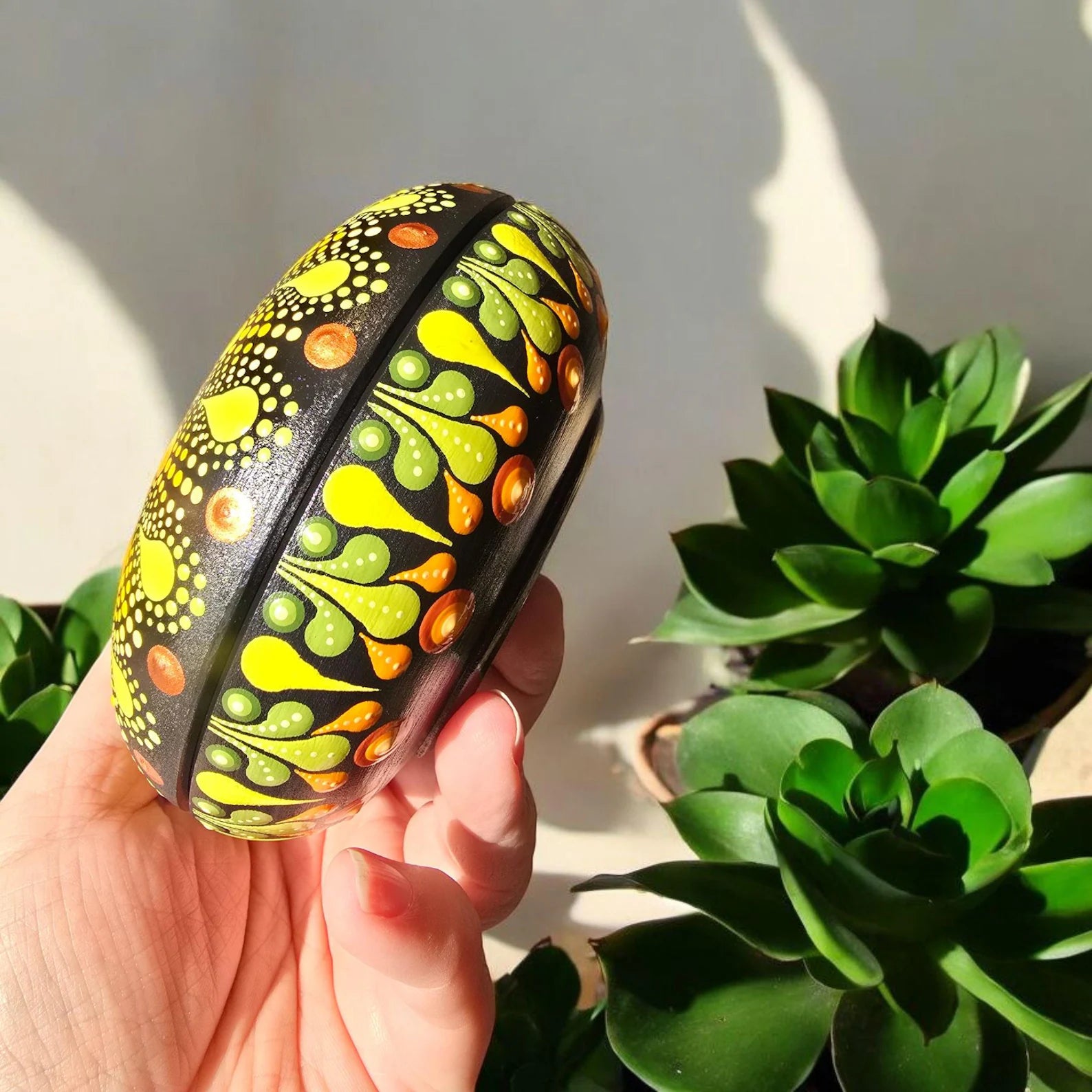 Chaque point est appliqué avec précision pour créer un motif harmonieux et unique, faisant de cette boîte un véritable objet d’art.