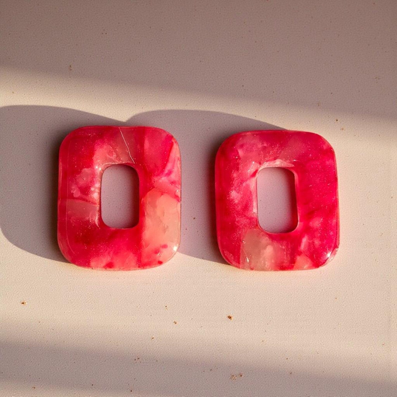 Boucles d’oreilles pampilles rectangulaires en pâte polymère – Rose marbré