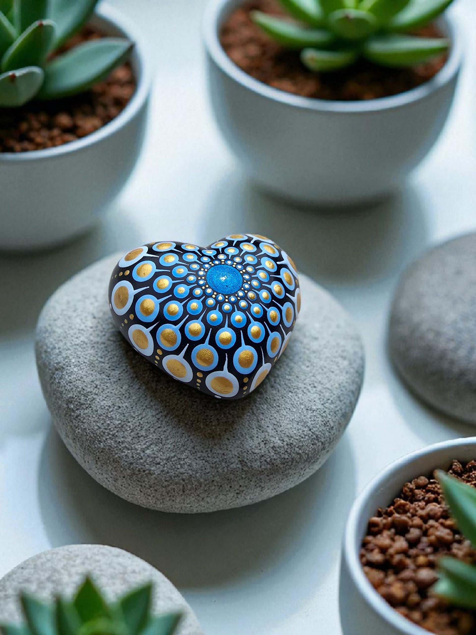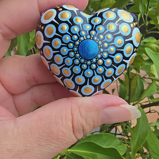 Petite pierre en forme de coeur mandala peinte à la main, réalisée en plâtre résine de haute qualité.