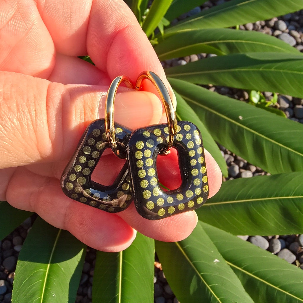 Pampilles rectangulaires en pâte polymère – noir et pointillisme vert métallisé