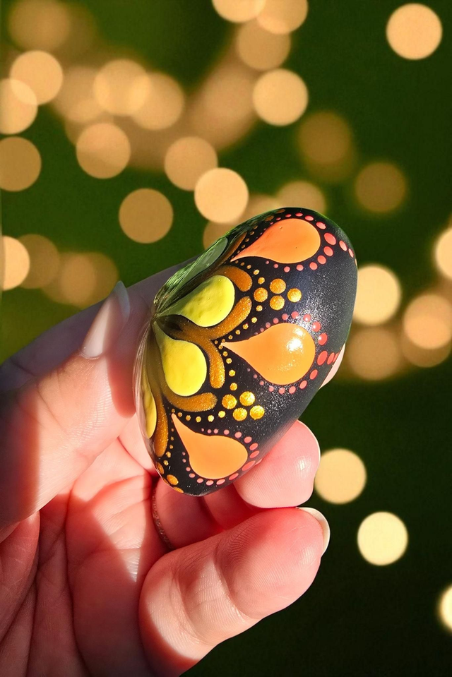 Petite pierre en forme de coeur mandala peinte à la main, réalisée en plâtre résine de haute qualité.