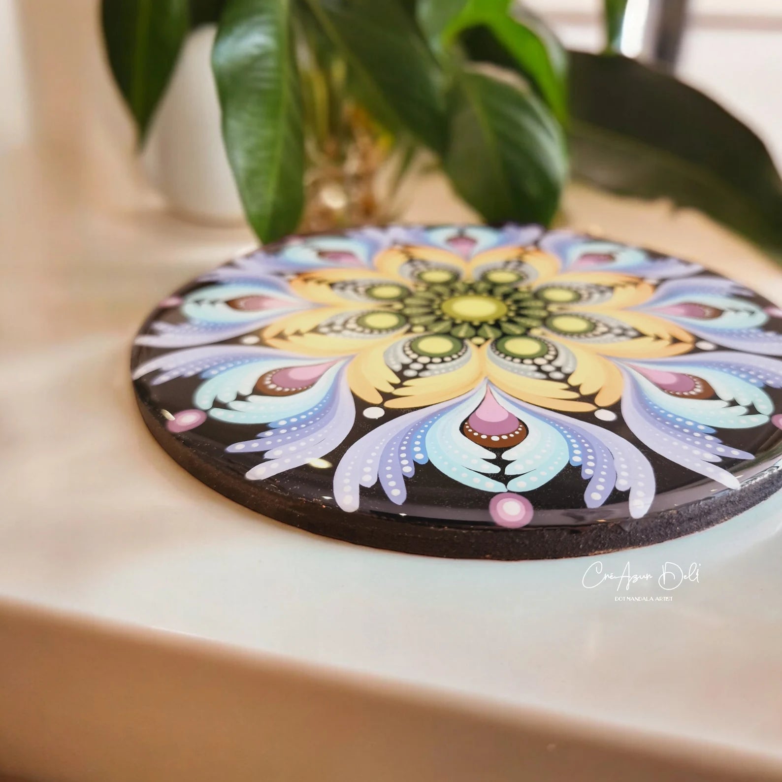 Ce mariage entre la chaleur du bois, l’esthétique apaisante du mandala et la protection durable de la résine en fait un objet à la fois pratique et décoratif.