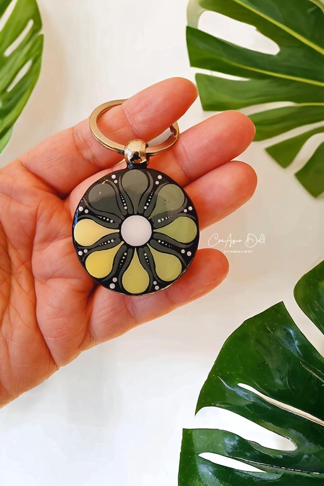 Ajoutez une touche artistique et spirituelle à votre quotidien avec ce porte-clés en bois peint à la main, orné de mandalas sur les deux faces.